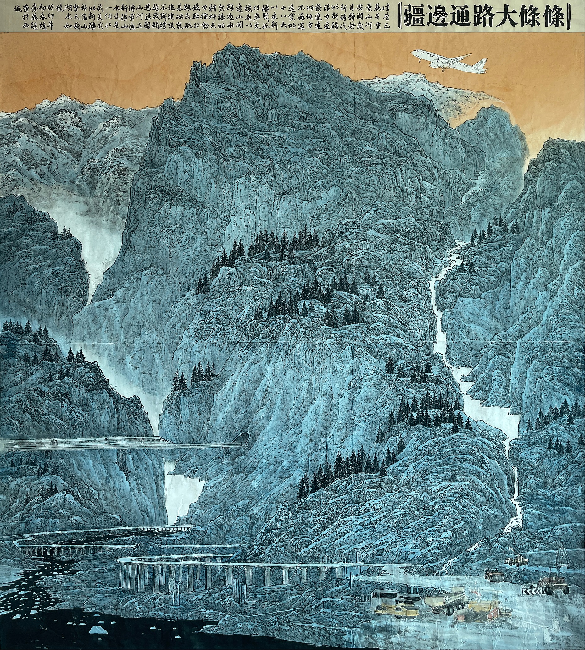 《条条大路通边疆》中国画 180cmx200cm