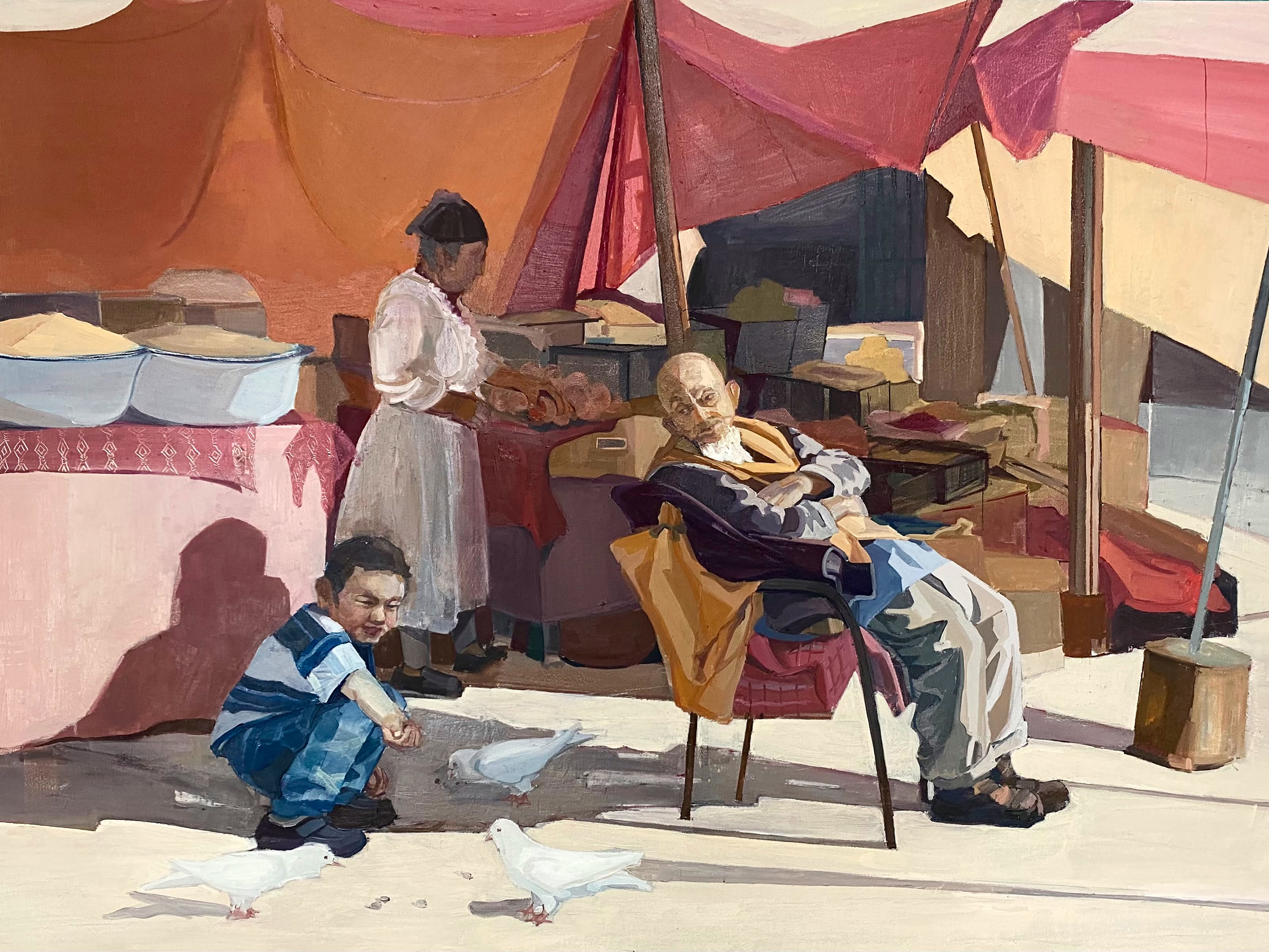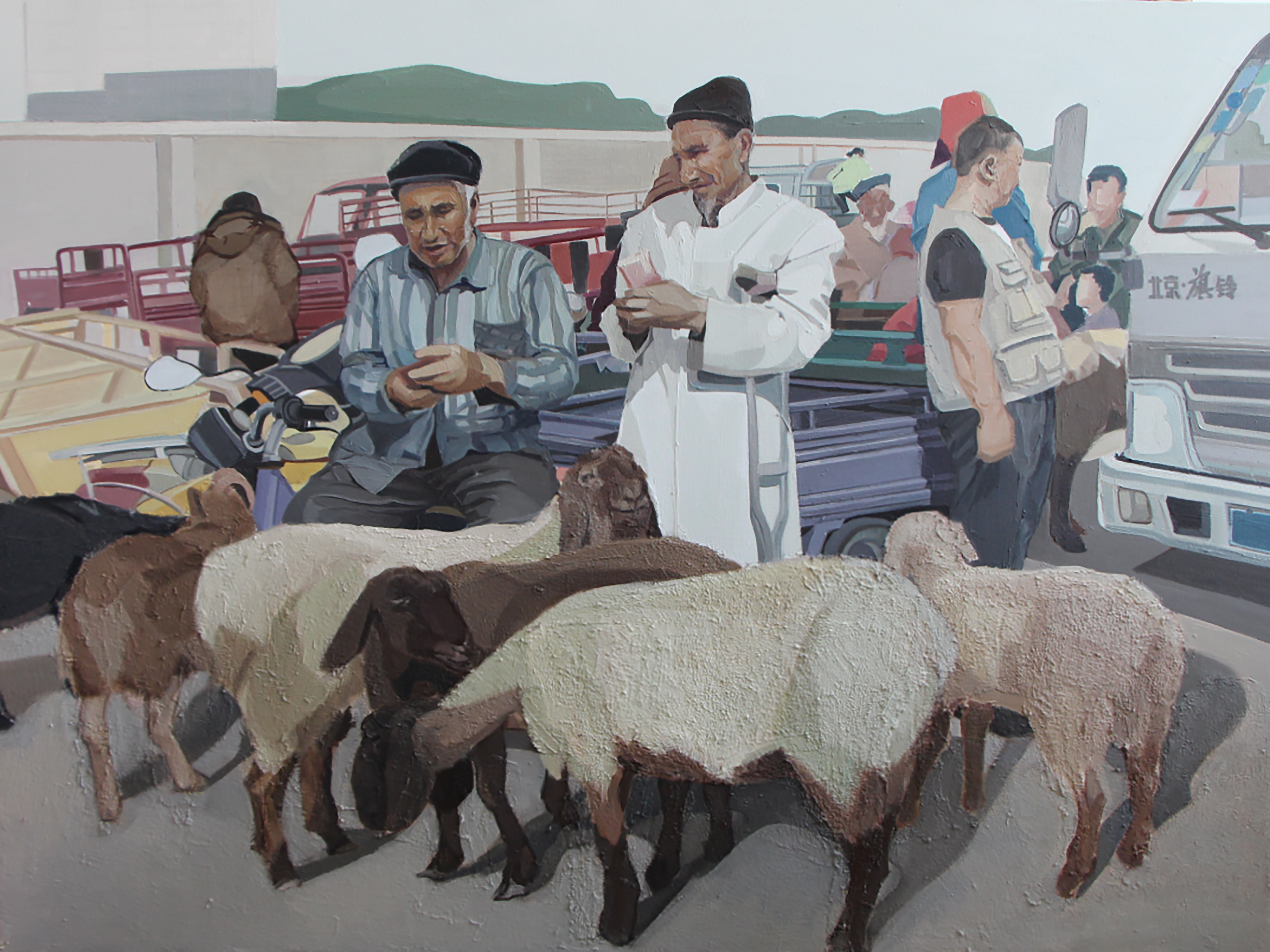《巴扎新象·烤鱼》油画 160cmx120cm