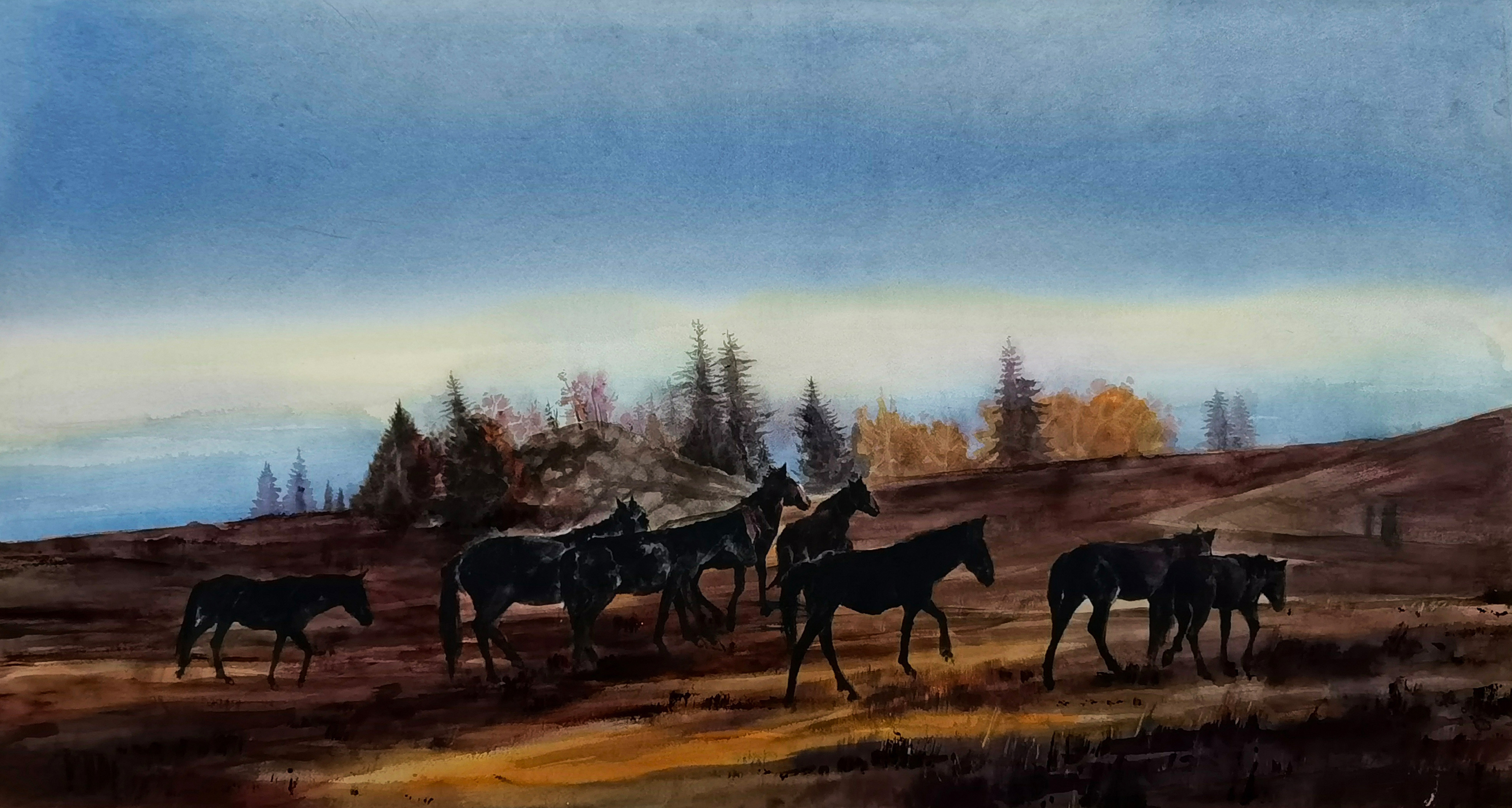 2019年,水彩《丝路雪霁》入“第十三届全国美展”新疆兵团美术作品展优秀奖;