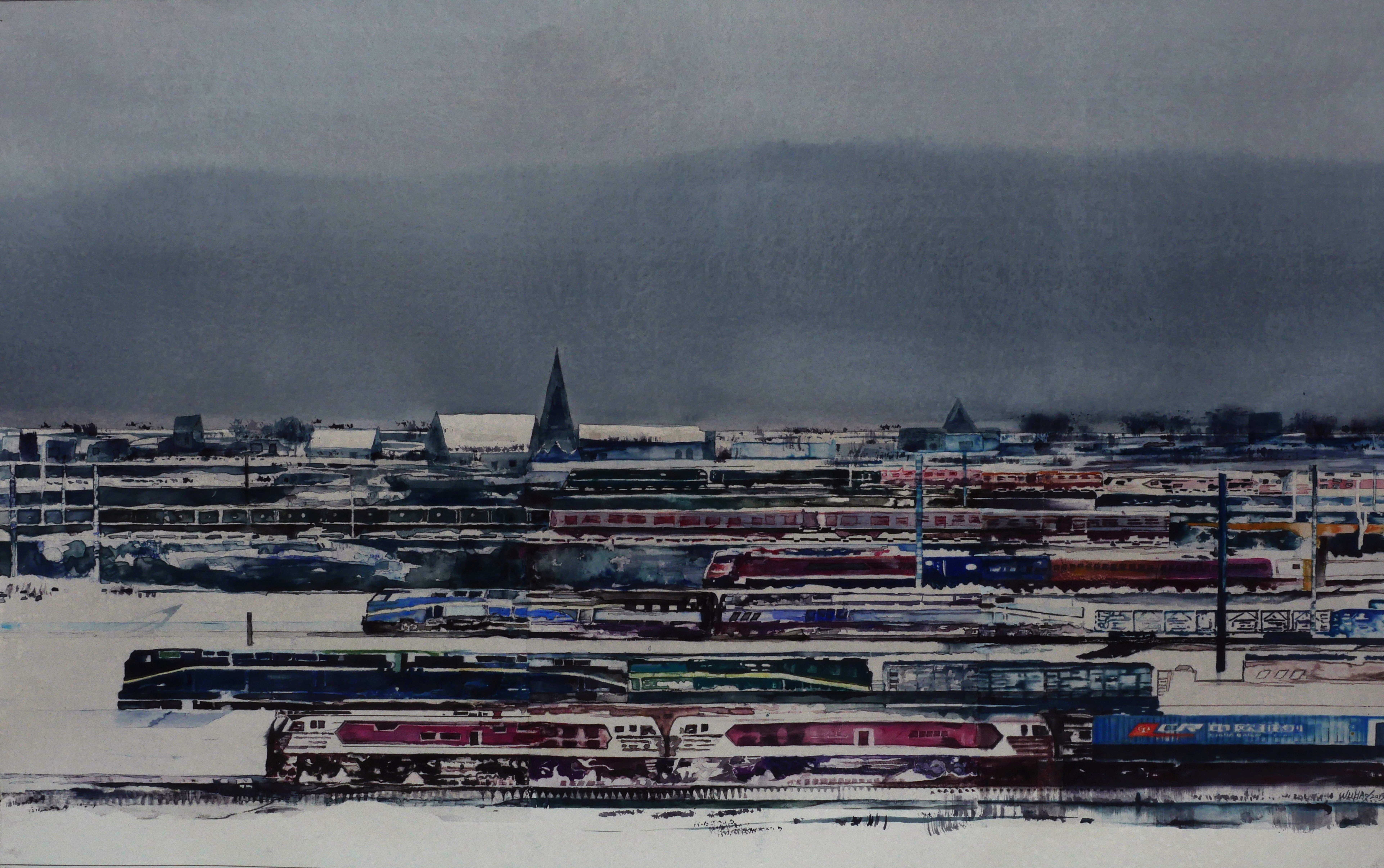 《丝路雪霁》 水彩 140CM * 90CM