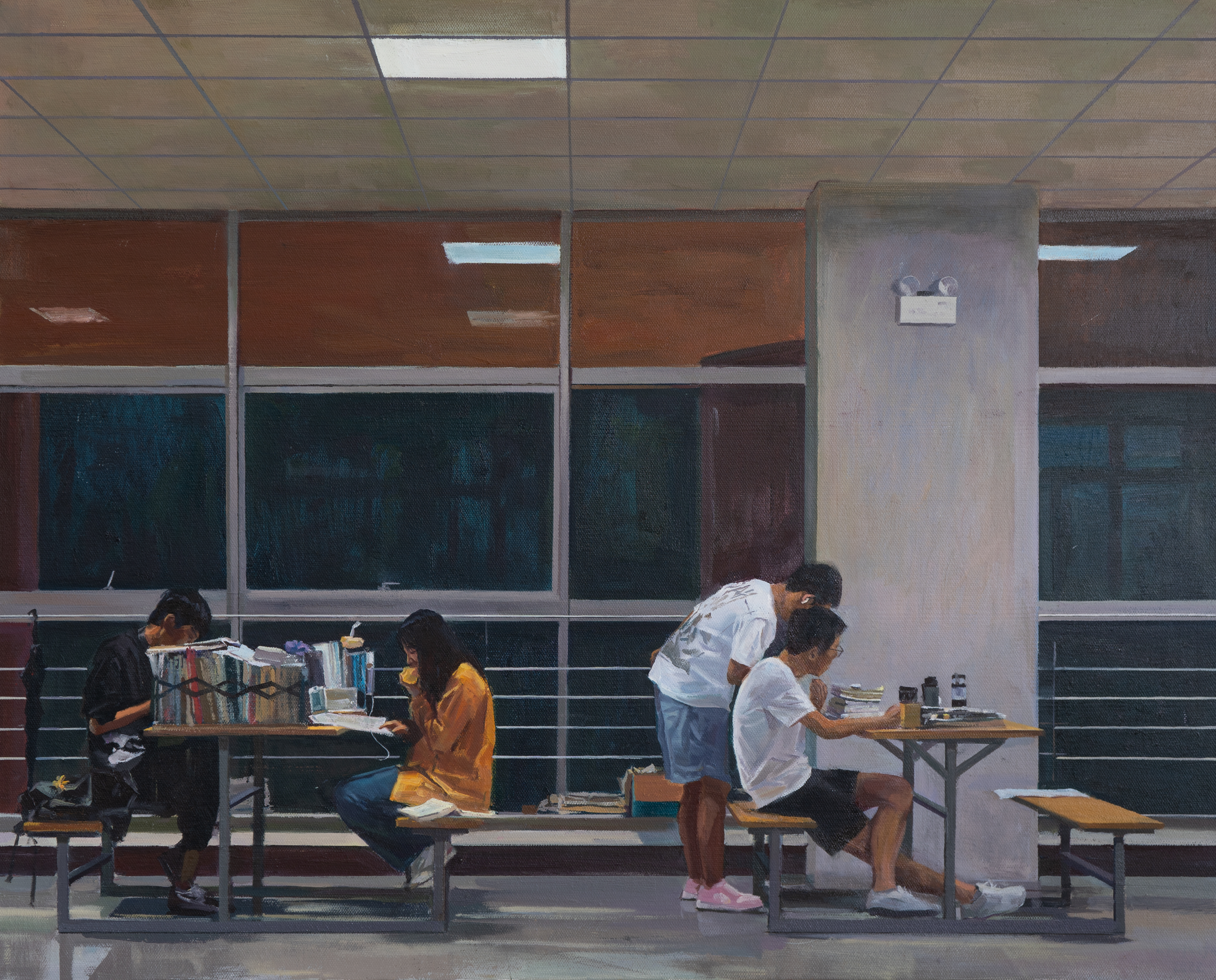油画《夜之华彩系列——图书馆一隅》100cm×80cm