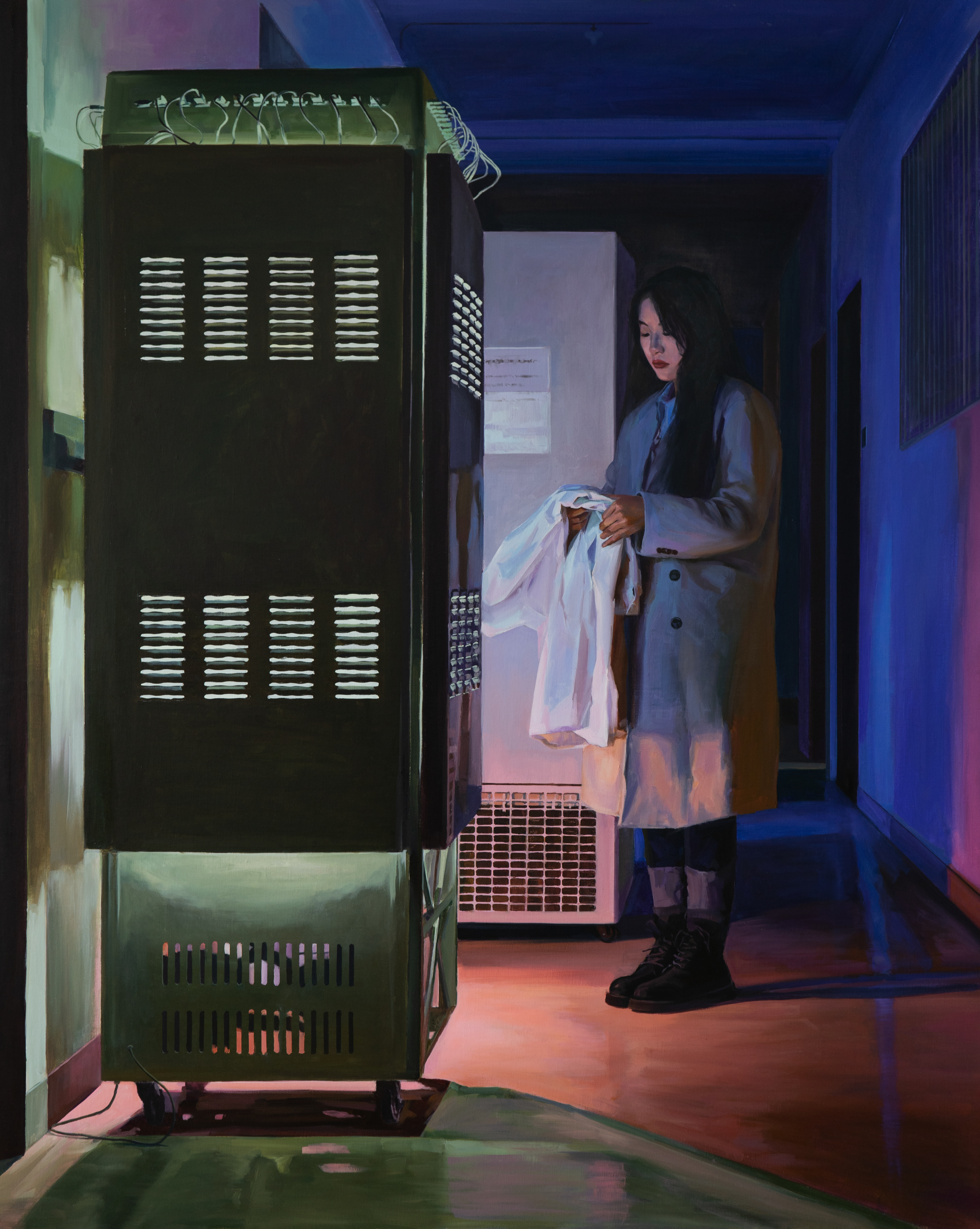 油画《夜之华彩系列——实验室走廊》150cm×120cm