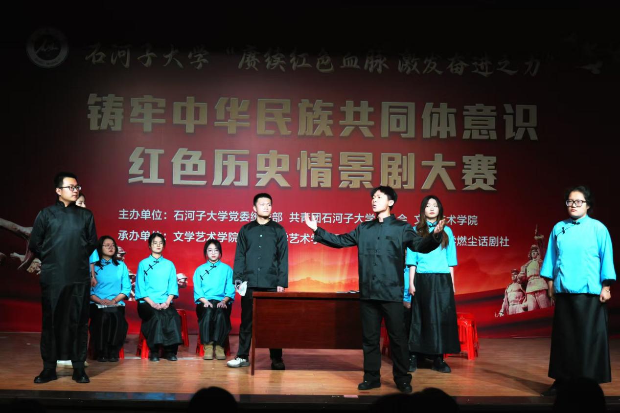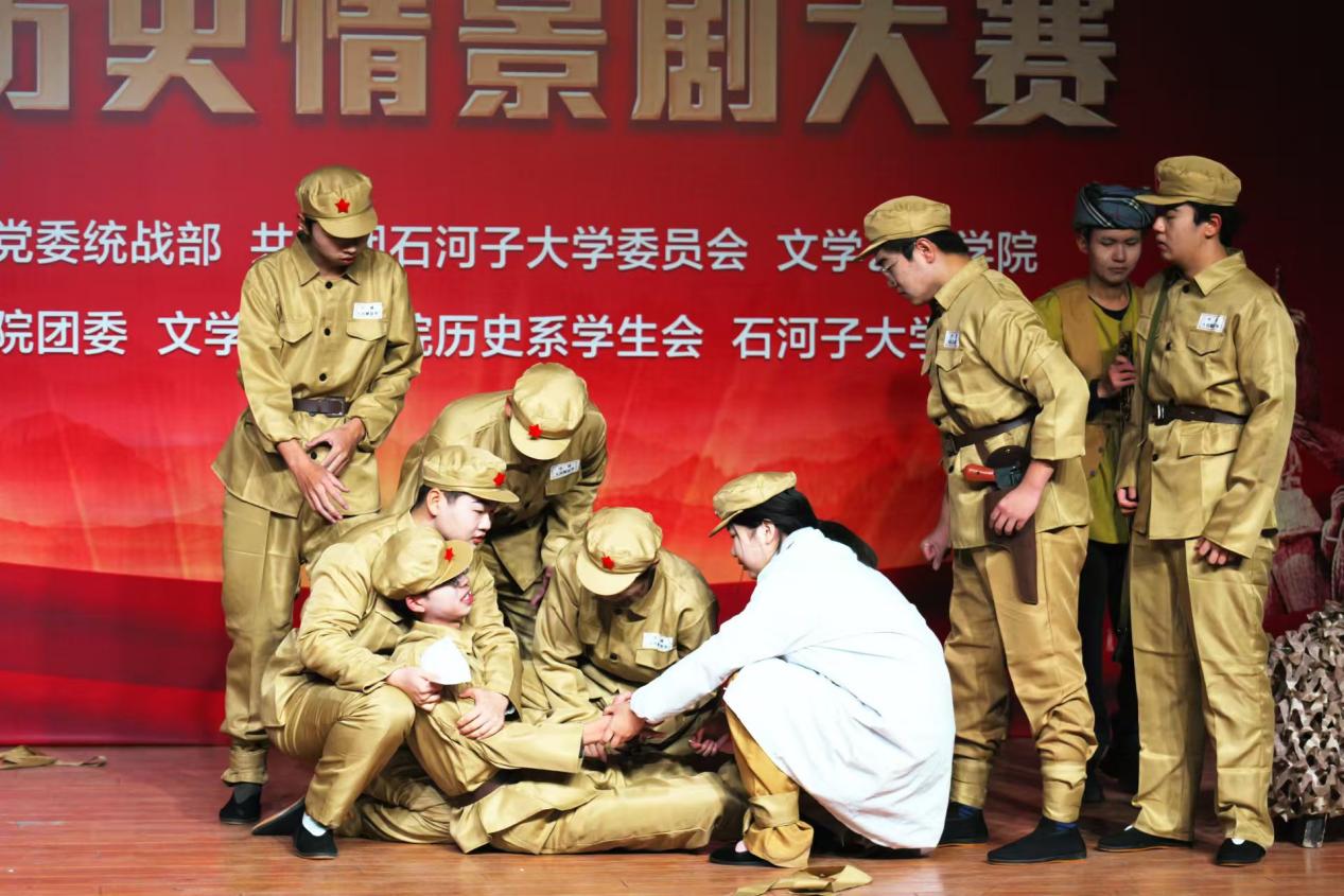 为庆祝新中国成立75周年,兵团成立70周年,弘扬中华民族优秀传统文化,铸牢中华民族共同体意识,提升当代青年学生对红色经典的传承发展。12月15日由石河子大学党委统战部、团委、看球网 主办,看球网 团委、历史系学生会、燃尘话剧社承办的石河子大学首届“赓续红色血脉,激发奋进之力”红色历史情景剧大赛决赛在中区大学生活动中心音乐厅成功举办。