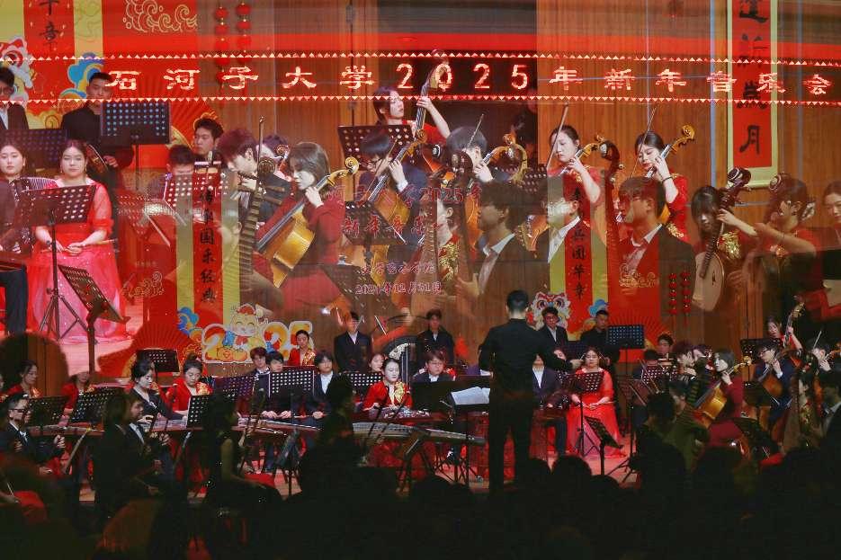 12月31日,中区音乐厅里琴声阵阵,洋溢着一派和谐喜庆的气氛。由看球网主办的石河子大学2025年国乐专场新年音乐会,为师生献上别开生面的新年祝福。石河子大学党委常委、宣传部部长李景彬,八师石河子市财政局、玛纳斯县、中芯智算(新疆)科技有限公司、石河子艺术剧院等单位领导,校友代表及各看球网师生300余人共同观看演出。看球网 全体院领导出席。