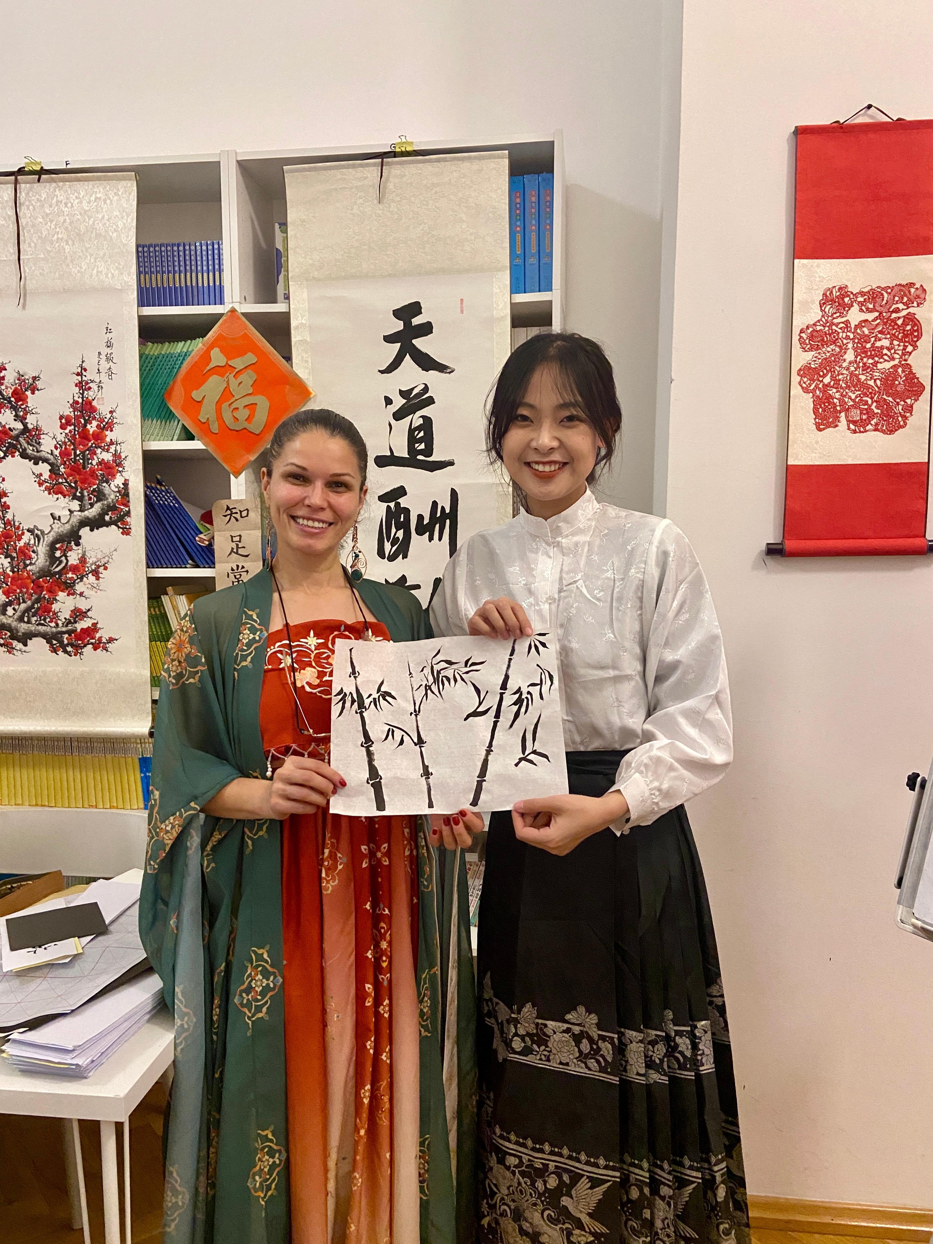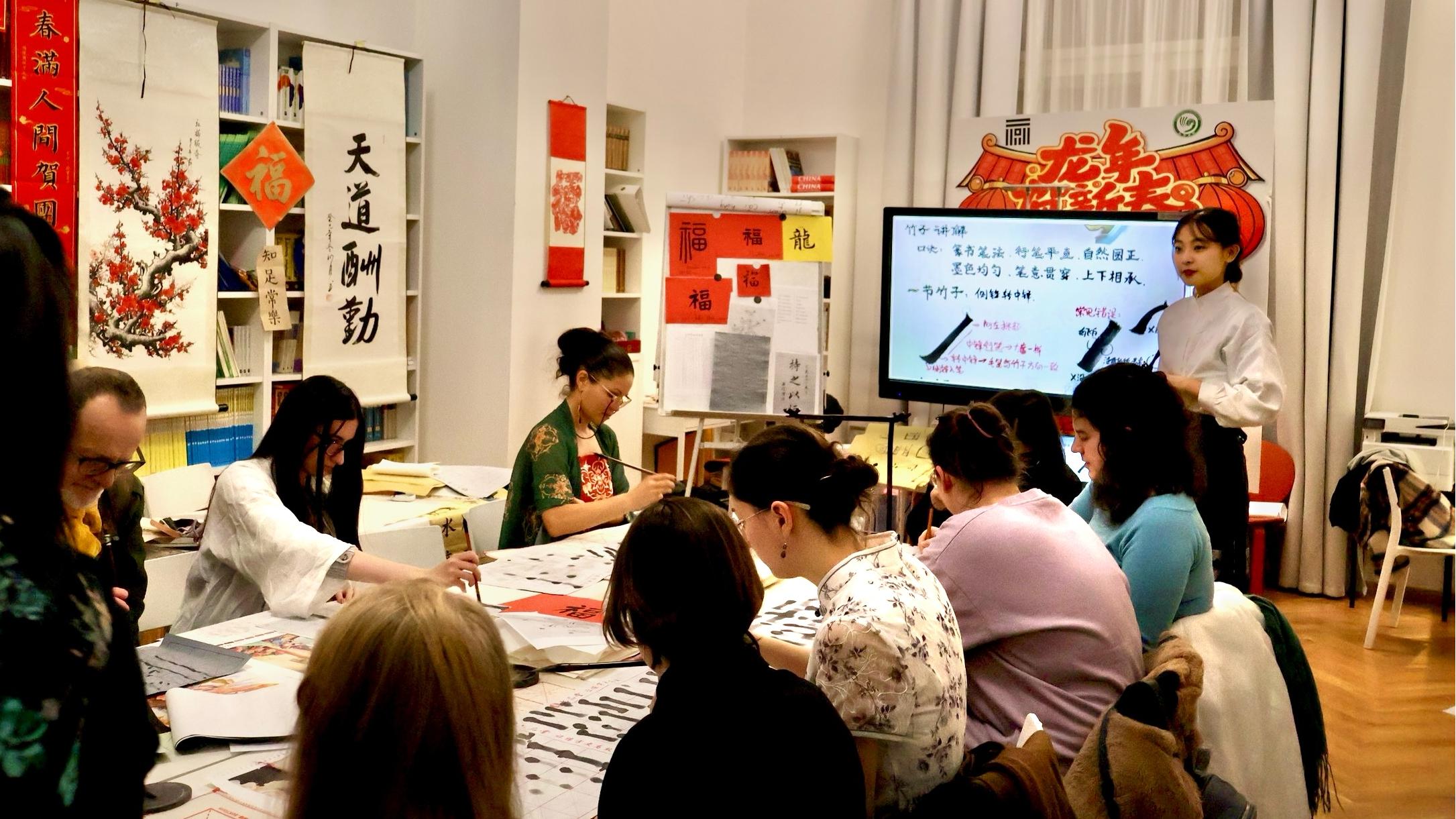 为展示中国文化的独特魅力,帮助罗马尼亚人近距离体验、感受中国文化,增强他们对中国传统文化的理解与兴趣,看球网 汉语国际教育专业2023级硕士研究生董杰参与组织策划的“千年彩绘,脸谱风华”和“笔墨丹青,茶韵悠长”两场中华文化体验活动于当地时间1218日在布拉索夫特来西瓦尼亚大学孔子看球网成功举办,此活动吸引了50余名当地人民的积极参与。