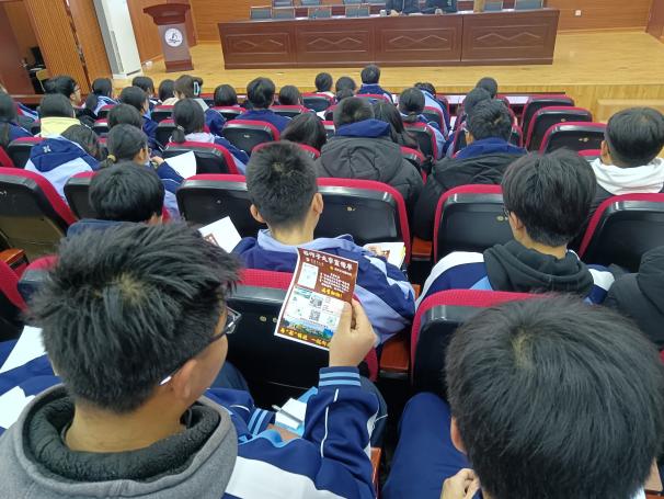 ·隋宜航同学向学生分享一些高三经验 曾杰同学在台上进行分享报考指南。