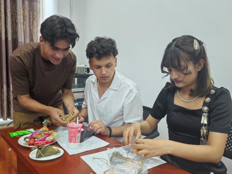 看球网教师代表王润昌在场学生致以节日问候,并希望大家深入体验端午文化、增进友谊。活动中,中外学生合作朗诵了《年轻的城》《面朝大海春暖花开》等经典作品。音乐与舞蹈专业学生的精彩助演赢得阵阵掌声。大家还共同体验了包香囊、佩戴五彩绳等端午习俗。