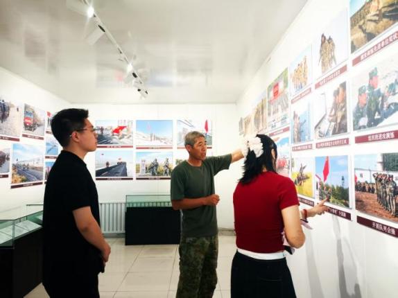 汤新江向团队成员讲解163团民兵边防哨所的发展历程