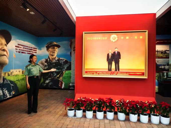 在魏德友爱国主义教育基地,团访“七一勋获得者魏德友夫妇。二老50余年扎根边境线,以徒步巡逻守护国土。“不困难,有困难就克服困难”,老人用