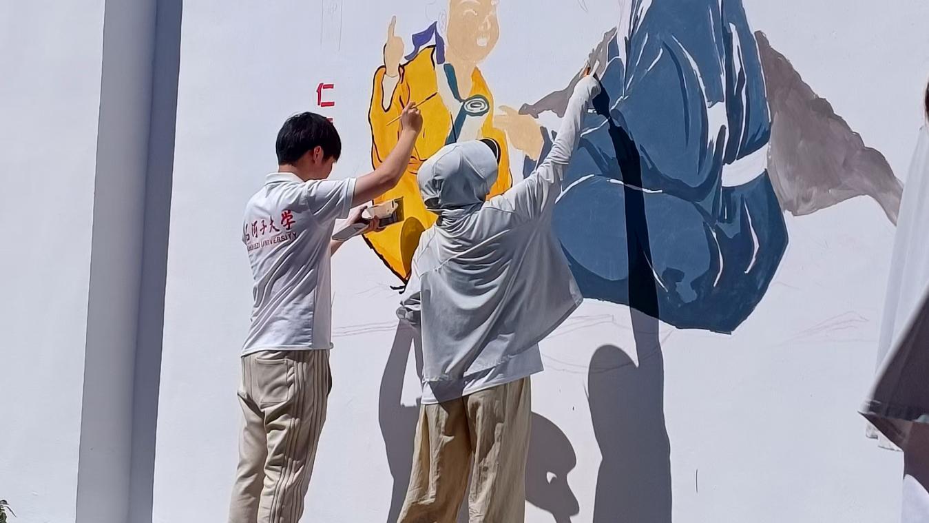 7月17日,看球网(中国)官方网站 赴第六师奇台县奇台农场“同心同绘”中华文化传承社会实践团于农六师奇台农场进行一系列以“中华传统美德”为主题的墙绘制作实践。