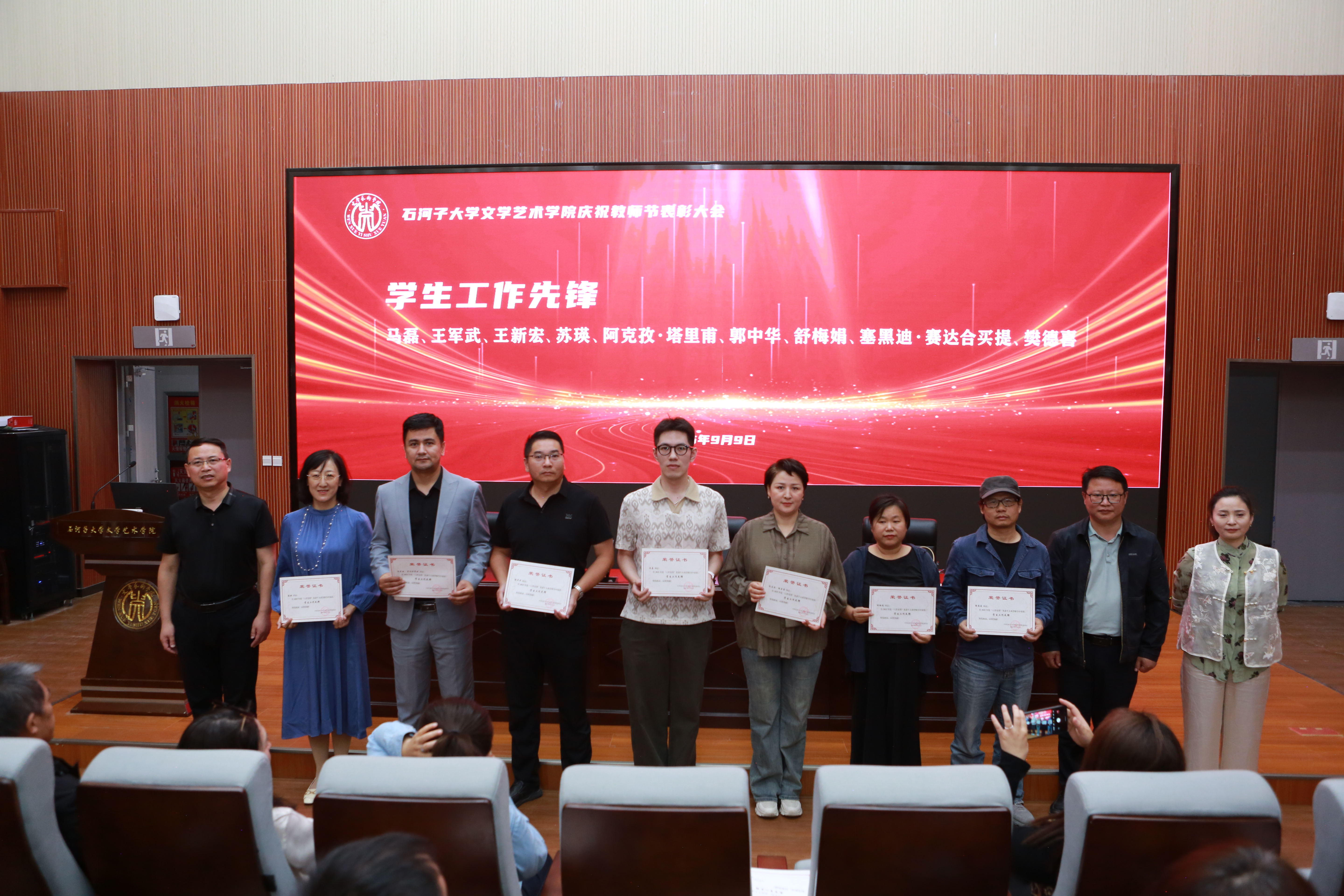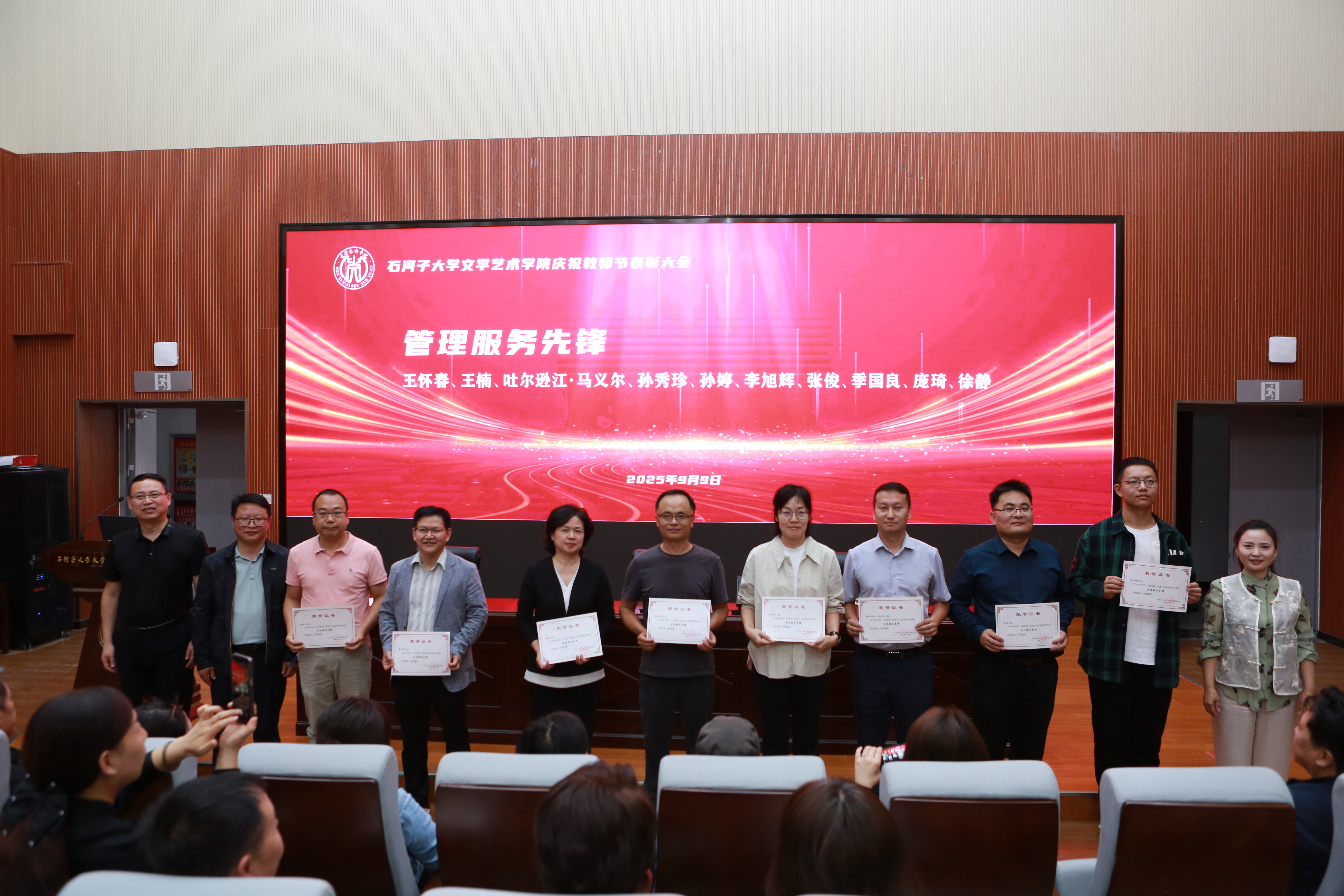 为庆祝第41个教师节,看球网(中国)官方网站 于2025年9月9日下午,在看球网学术报告厅(艺1015室)隆重举行了2025年度“六育先锋”先进个人表彰大会,对在教学、科研创新、社会服务、管理、党务、学生工作六个方面工作突出的老师进行表彰。活动由胡新华副院长主持,看球网领导、全体受表彰教师、看球网师生代表共同见证了这一荣耀时刻。