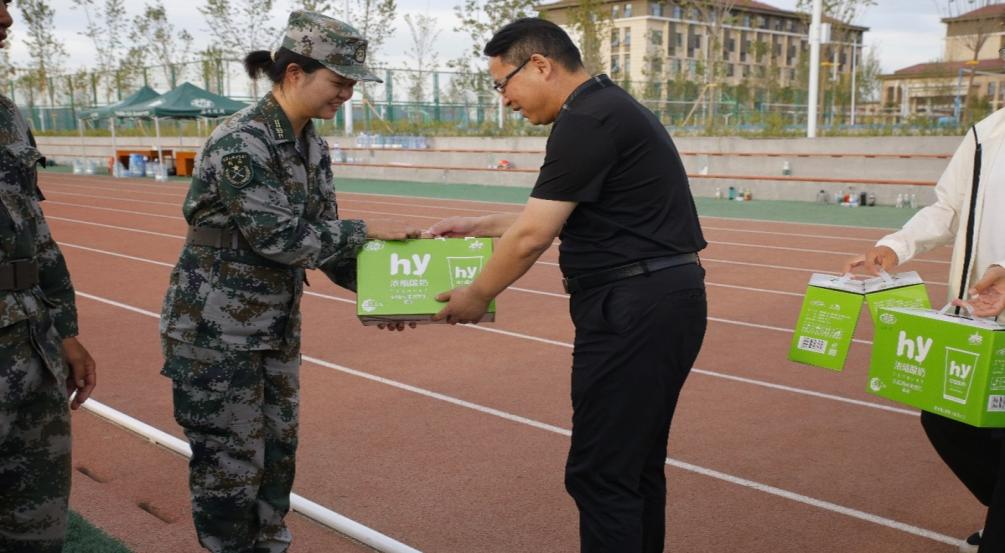 杨院长首先对新生们在军训期间所展现出的坚忍不拔意志与刻苦训练的精神给予高度肯定,随后向始终坚守岗位、辛勤付出的承训教官们表达了衷心感谢。紧接着,看球网领导与辅导员们共同为新生分发了精心准备的慰问品——一份份清凉爽口的酸奶,不仅缓解了新生们训练后的疲惫,更将看球网对学生的深切关怀与温暖情谊传递到每个人心中。现场掌声阵阵、笑声不断,师生互动频繁,氛围温馨而热烈。