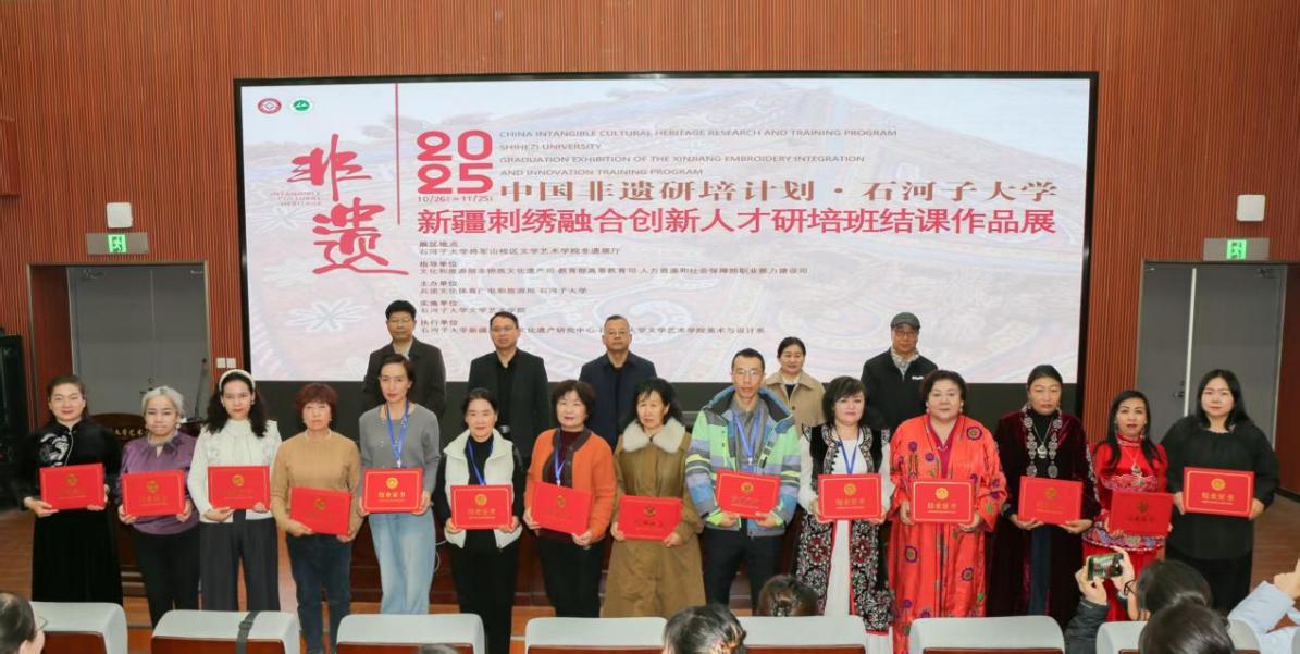 文旅部、教育部、人社部中国非物质文化遗产传承人研培计划・2025年度石河子大学新疆刺绣融合创新人才研培班结业典礼在石河子大学圆满举行